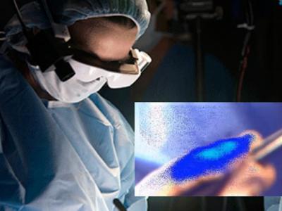 透过一副特殊的高科技眼镜,医生小心切除闪着蓝光的癌变组织。 (蜘蛛网)据中国...