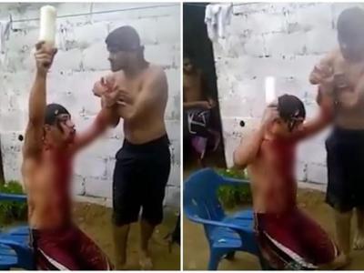 拉丁美洲驱鬼仪式 男子满身披血用瓶敲头