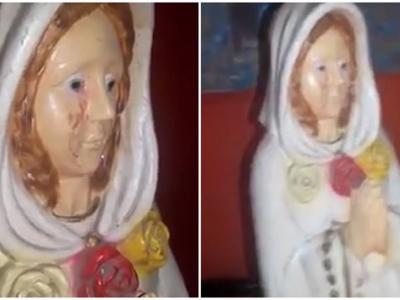 圣母像脸上有疑似血泪的东西。大批信徒前往参拜圣母...