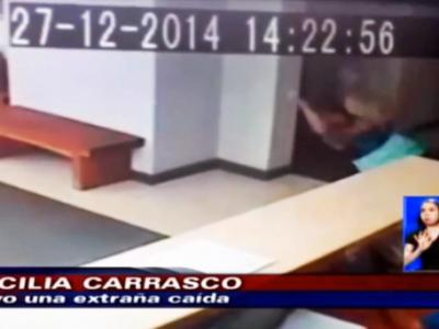 旁边没人,智利女突向后重摔。 捕获鬼手?被推倒智利女惊呼:有两只手推我。 ...