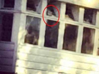 迪安坚称拍到的白影是鬼魂 迪安拍到一个疑似男童(红圈)站在窗边往外望 迪安...