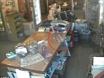 美国新罕布什尔州一间店铺监控拍到灵异事