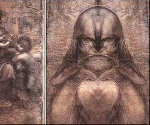 该组织在其网站上公布了素描中看到的耶和华的头像。左边为达·芬奇原作,右边为镜...