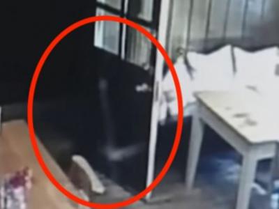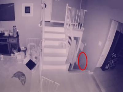 监视器拍到半透明白影来回走动。躺在旁的猫咪对白影没反应。(蜘蛛网eeook.com报道...