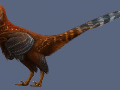滕氏嘉年华龙的复原图像,显示这种恐龙有不对称的羽...