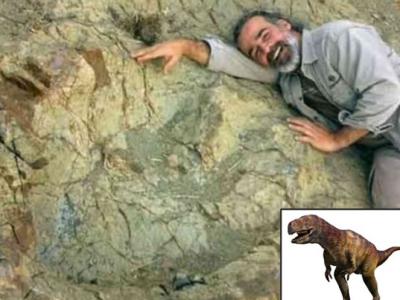 苏克雷发现迄今最大的恐龙足迹。 专家推断,脚印属阿贝力龙(图为假想图)。 ...