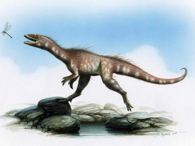 孙氏振元龙的复原效果图。这种生活在大约1.5亿年前的恐龙体长约1.5米,相比它的同...