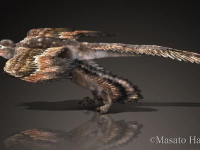 发现迄今世界最长尾羽的恐龙——杨氏长羽盗龙(Changyuraptor yangi)复原图(...