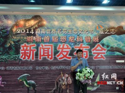 湖南首届恐龙科普展新闻发布会在省植物园召开 湖南省森林植物园党委书记王明旭...