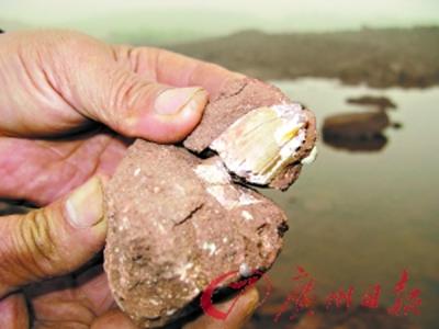 恐龙牙化石 三水发现的恐龙蛋化石 三水恐龙蛋化石就在这附近发现 (蜘蛛网...