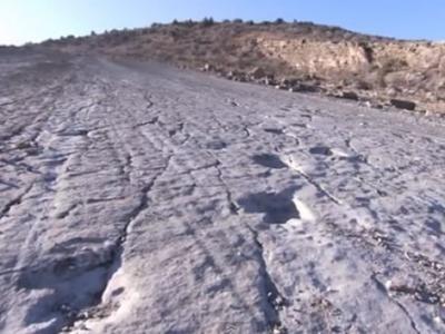 中亚国家土库曼斯坦“恐龙高原”留有2500个恐龙脚印化石 (蜘蛛网报道)据东森新...