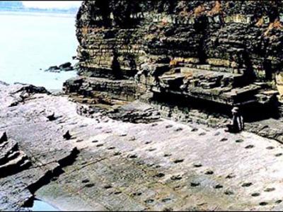 韩国曾多次发现恐龙足迹化石 科学家们在韩国北忠清道省永东县(Yeongdong Count...
