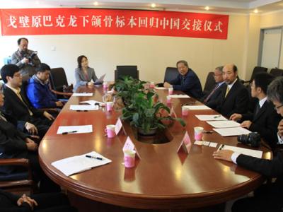 戈壁原巴克龙下颌骨标本回归中国交接仪式