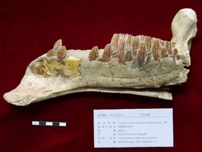 重新回国的戈壁原巴克龙下颌骨化石标本