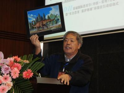 中科院恐龙研究专家董枝明专门制作图板展示和讲解恐龙知识 中国古生物化石保护...