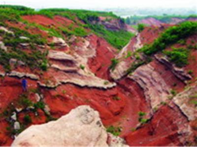 莱阳金刚口发育的平原恐龙峡谷。在2~3平方公里的范围内,集中分布十多条切割较深...