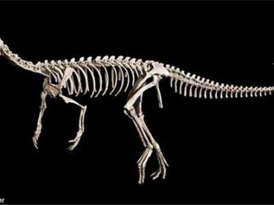 考古学家拼凑出接近完整的“拂晓奔跑者”恐龙骨骼结构 塞里诺教授与该恐龙骨骼...