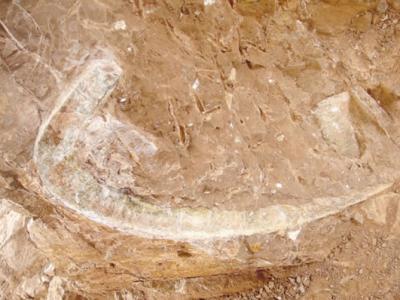 埋在山体中的甲龙肋骨化石 中外联合发掘东阳甲龙出山 10月8日下午3时,当甲龙化...