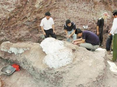 浙江东阳发掘完整甲龙背板及恐龙脚印化石 由中外专家联合组成的东阳恐龙抢救性保...