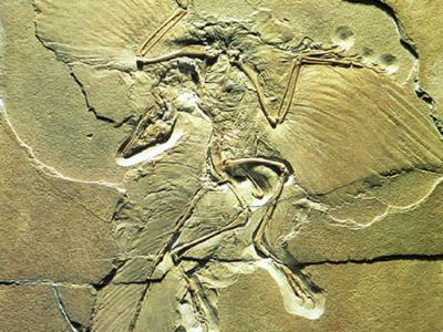 始祖鸟化石(蜘蛛网配图) 对被认为仅仅含有一只有翼恐龙的羽毛痕迹的化石的重新...