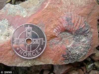 这个在挪威斯瓦尔巴特群岛发现的侏罗纪菊石,显示了当时的气温突然降低。科学家认...