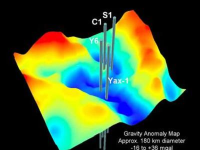 Chicxulub凹地的三维布格重力图。(Dr. David A. Kring(USRA/LPI)) 据3月5日的《...