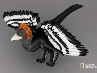 赫氏近鸟龙复原图 中美科研人员联合研究显示,远古小型四翼恐龙“赫氏近鸟龙”四...