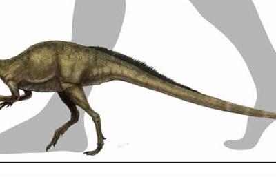 果齿龙与人类的大小比较 美国考古学家日前在科罗拉多州发现了一种小型恐龙种...