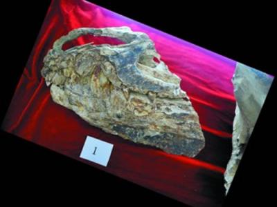 霸王龙的三分之一头骨化石 工作人员发现的另一只大型恐龙的腿骨化石 今年...