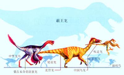 兽脚类恐龙向鸟类演化示意图 千禧中国鸟龙正模标本 恐龙...