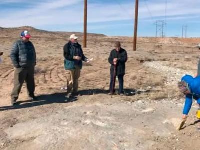 土地管理局的检查员检查了米尔峡谷恐龙足迹遗址的损坏情况犹他州的兽脚类恐龙足迹(...