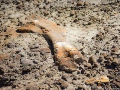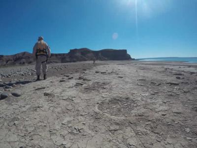 阿根廷巴塔哥尼亚省大坝水位降低 湖岸出现恐龙脚印化石(Crédito: Prensa Prefect...