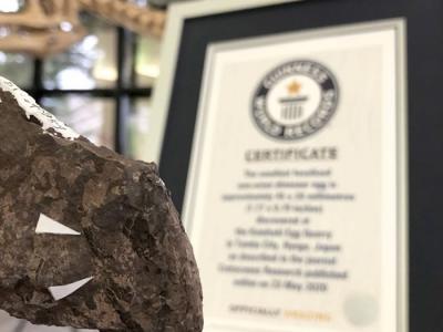 日本兵库县丹波市发现的世界最小恐龙蛋化石打破吉尼斯世界纪录(图/兵库县立人与自...