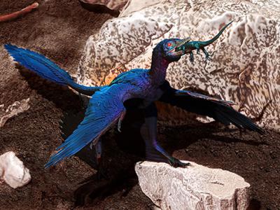 赵氏小盗龙吞食王氏因陀罗蜥复原图(邹晶梅供图)赵氏小盗龙(STM5-32)标本照片(...