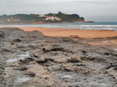 西班牙阿斯图里阿斯恐龙海岸的恐龙足迹中国云南禄丰发现的李氏滑石板三叉足迹的模式...