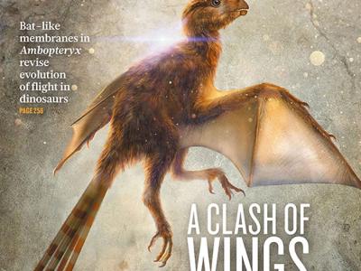 《自然》当期杂志封面:古脊椎所发现侏罗纪具膜质翅膀的恐龙a...