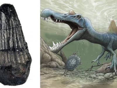 日本和歌山的汤浅町岸边挖掘出长1.4公分棘背龙牙齿化石(蜘蛛...