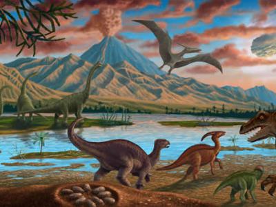 小行星坠落和大规模火山喷发共同导致了恐龙和其他中生代动物的...