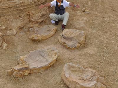 蒙古国戈壁沙漠发现3个超过1米的巨型恐龙足迹化石,...