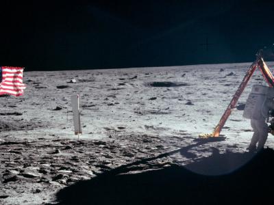 1969年7月,阿波罗11号的尼尔·阿姆斯特朗在月球上插旗后,被同为月球行走者的巴兹...