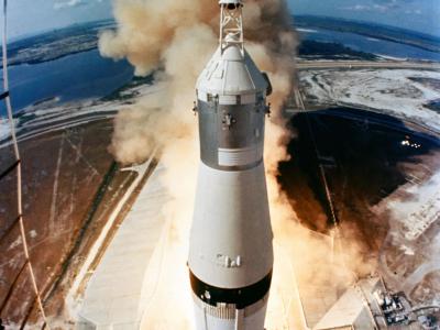 阿波罗11号宇宙飞船从发射台升空。图片来源:美国国家航空航天局(蜘蛛网eeook.com...