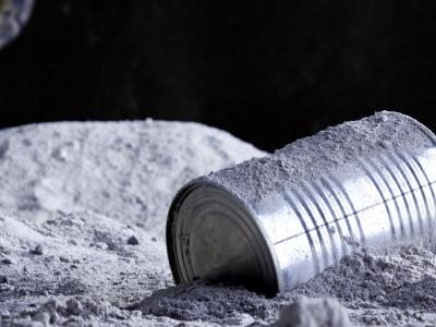 月球上废弃的锡罐的渲染图。(图片来源:photovideostock/Getty Images)(蜘蛛网e...