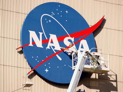 2006年,一名画家在格伦研究中心飞行研究大楼(机库)北立面的美国国家航空航天局“...