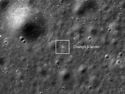 NASA的月球勘测轨道飞行器LRO拍摄到月球表面的嫦娥五号探测器(蜘蛛网eeook.com报道...
