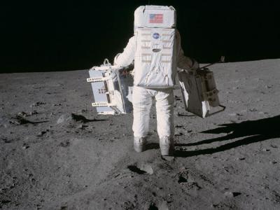 阿波罗11号宇航员Buzz Aldrin在月面上提着EASEP科学实验装置(来自:NASA)阿波罗1...