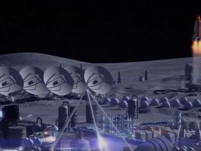 中国国家航天局发布的一段视频中的剧照,概述了未来几十年将开发的月球基地的概念。...