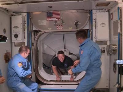 本肯(中)率先进入太空站。(蜘蛛网eeook.com报道)据东网:...