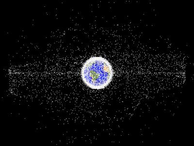 模拟环绕地球的轨道碎片,展示地球同步区域的物体数量。(蜘蛛网eeook.com)据美国...
