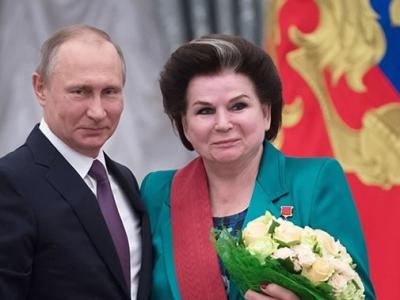 俄罗斯总统弗拉基米尔·普京向世界第一位女宇航员瓦莲京娜·捷列什科娃祝贺生日(&...
