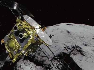 日本无人探测器“隼鸟2号”探测小行星“龙宫”时在上空50米测...